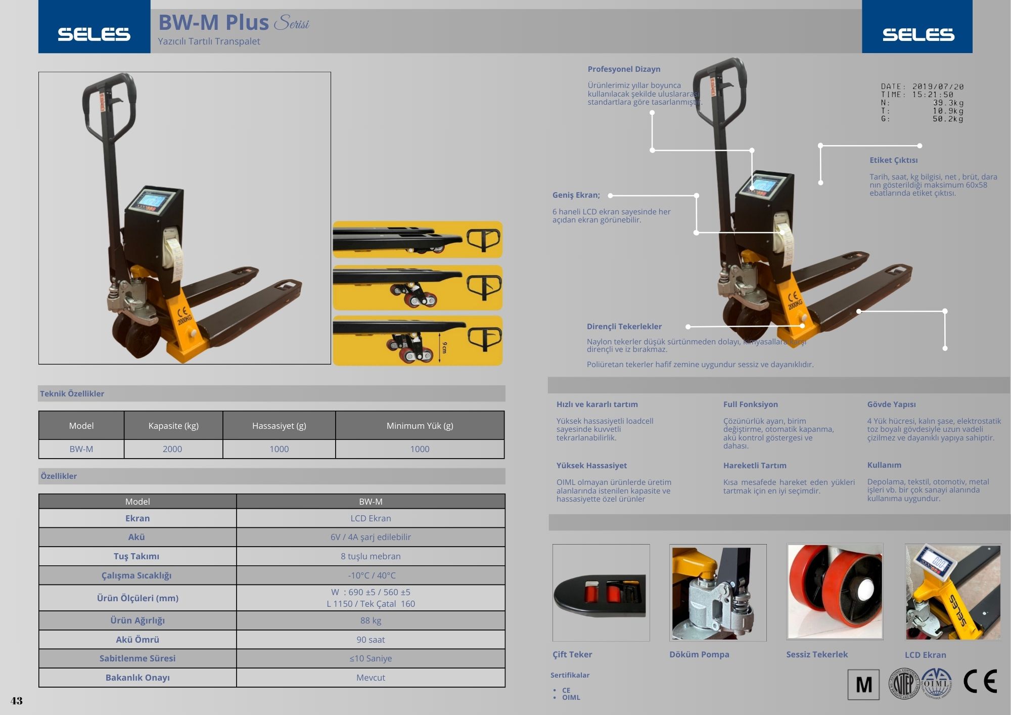 Seles Yazıcılı Transpalet Baskül, yüksek hassasiyet performansı ile doğru tartım ve ihtiyaca uygun kapasite & hassasiyet seçenekleri ile tüm sektörlere hitap etmektedir. Firmamız kullanım alanına göre Özel Üretim ve Çözümlerle sektördeki liderliğini SELES markası ile korumaktadır.